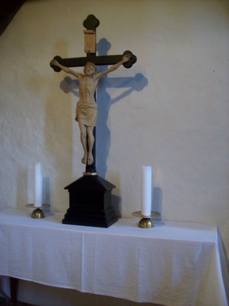 Vom Altarraum aus wandte ich mich um und blickte auf die Empore im Hauptschiff. Sie ist jetzt zum größten Teil in den barocken Farben blau, weiß, gold mit abgestimmten Nuancierungen gestrichen und passt sich harmonisch zu den Farben der Orgel, des Altars und der Kanzel an. Unter der linken Seite der Empore befinden sich ein Gemälde aus vorigen Jahrhunderten, das einen Pfarrer darstellt, ein grünes Deckenornament mit goldener Sonne und vier Engelköpfen sowie ein von Tischlermeister Horst Jähnke restauriertes Jesus-Kreuz. Andere, noch nicht gezeigte Kostbarkeiten wurden vor allem vom engagierten Lychener Bürger Henryk Wichmann, Landtags- und Kreistagsabgeordneter der CDU, in langen Recherchen aufgefunden, die sicherlich bald auch in unserer Kirche zu sehen sein werden. Henryk Wichmann hat sich mit großem persönlichem Einsatz für die Restauration der St.-Johannes-Kirche eingesetzt und wird es weiterhin tun. Ihm gebührt besonderer Dank und Anerkennung.
