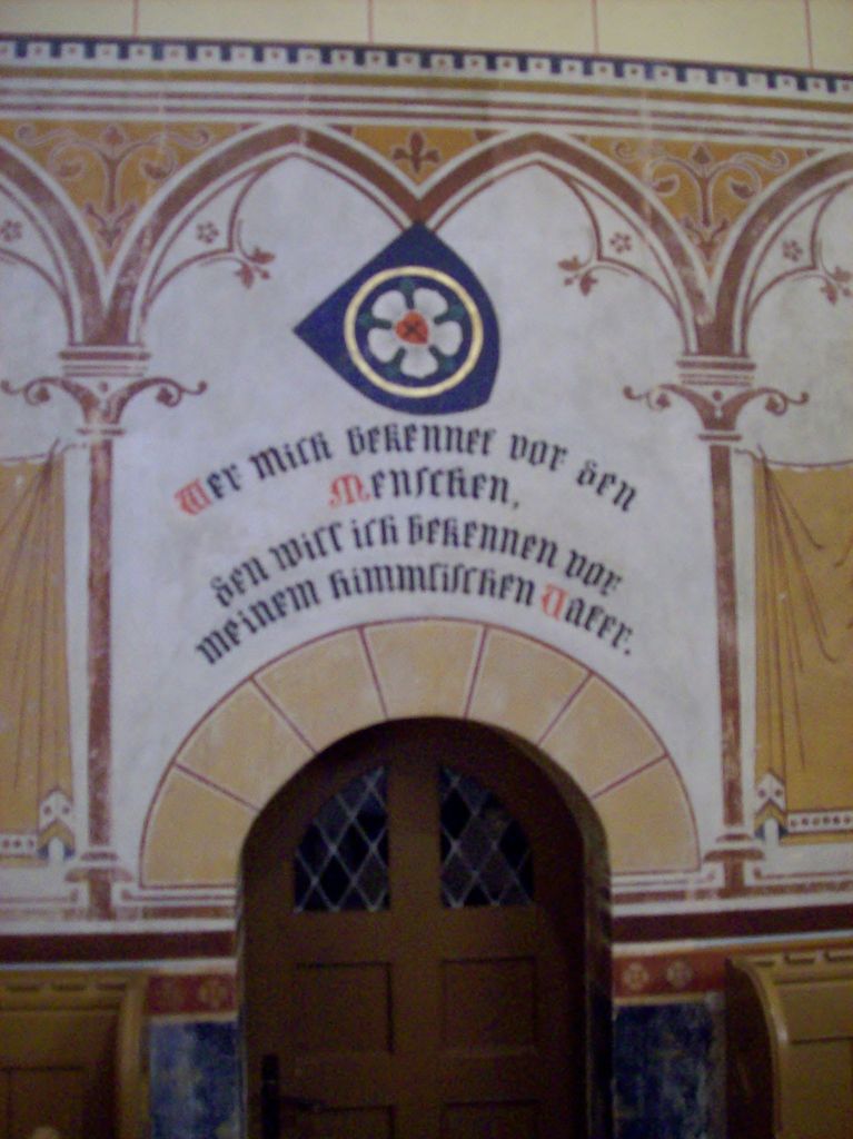 Gestern, am Johannestag wurde die Lychener Stadtkirche nach langer und aufwendiger äußerer und innerer Restauration mit einer feierlichen Andacht eingeweiht. Schon vor 18.30 Uhr konnten Lychener Bürger und viele Gäste den neu gestalteten Innenraum mit freigelegten früheren Wandmalereien, wieder aufgefundenem altem Inventar und farblicher Neugestaltung der Empore bewundern. Im Altarraum hatten junge Restauratoren das neugotische Wandgemälde von 1895 in sorgfältiger Kleinarbeit freigelegt und die Decke in hellem Beige mit weinrotem Abschlussband gestrichen. Hell erleuchtet hängt nun wieder der alte neugotische Jerusalem-Radleuchter in der Mitte des Chorraumes.